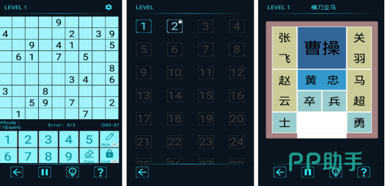 集合数独、华容道两大经典智力项目的游戏合集。其中数独模块遵循标准九宫格规则;华容道包含40个独立关卡,按步数限制分级设计,“曹操”标识块需在限定移动次数内抵达出口。所有谜题均经人工校验,确保解法唯一性与逻辑严密性。