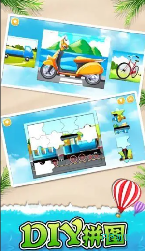 以双语呈现为核心特色,每幅拼图均同步输出中英文语音与文字标注。内置超40种真实交通工具图谱,涵盖陆、海、空典型代表;背景采用低刺激高辨识度的七色柔光场景,契合婴幼儿视觉发育规律。拼图块数由4片起始,逐级开放至9片关卡,难度梯度平滑,避免因挑战失衡导致注意力流失。边玩边学,认知积累有节奏,语言输入有支撑。