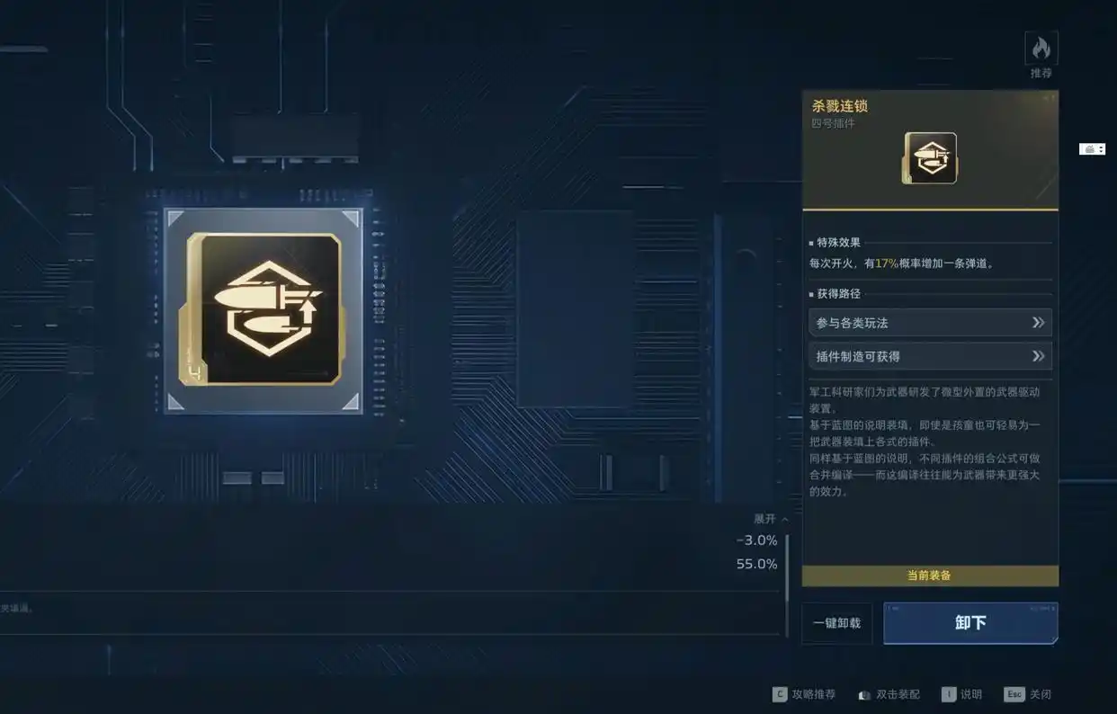 ③ 弹道增益型:“杀戮连锁”——提升17%分裂触发概率,进一步放大弹道扩散效应,在单体目标与群怪环境中均可实现更高频次的二次打击,实战中常呈现类似霰弹枪的覆盖式输出效果。