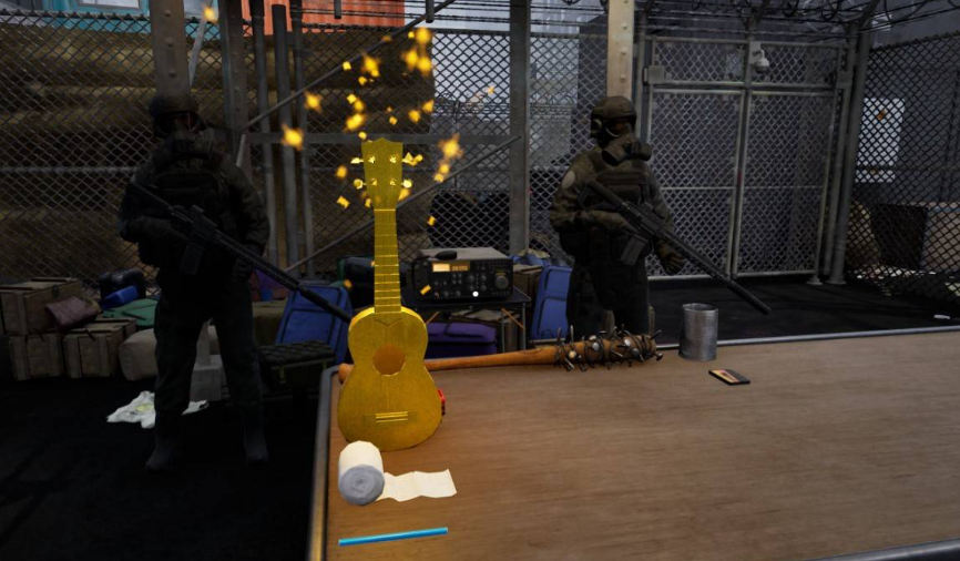 2、金色撬棍:仓库功能解锁后,进入该区域入口处的工作台区域。在散落杂物的桌面中央,可直接拾取该工具类收藏品。