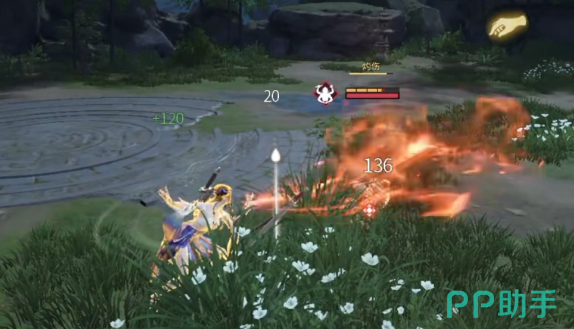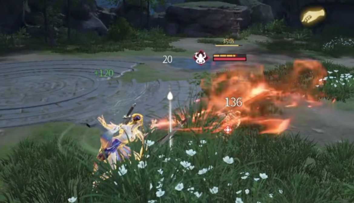 方诺一技能“傩舞”具备战术撤退与反制双重特性:施放时向后跃步并留下一枚傩面,傩面随即爆炸击飞范围内敌人;若在释放过程中被振刀命中并触发白霸体判定,则本次所受伤害将被暂存,并于下一次使用该技能时全额返还至目标身上,形成独特反伤节奏。