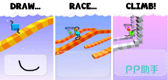 将跑酷玩法与手绘机制深度融合的创意作品。玩家需在限定区域内绘制延伸结构(如长腿),驱动基础方块角色持续奔跑。不同线条形态直接影响移动轨迹与速度表现:直线生成高效冲刺腿,曲线适配跳跃与转向,复杂构型可应对多变地形障碍。整体强调即兴发挥与物理反馈联动,无需预设素材或固定路径,真正实现“所画即所得”的动态体验。