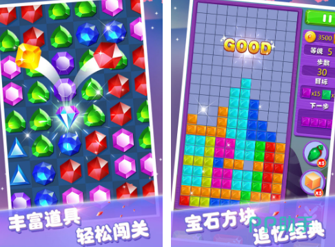 融合多类型消除玩法于一体,涵盖泡泡龙、俄罗斯方块、连连看等经典模式。每种关卡设定独立规则与目标分数,玩家需通过移动彩色宝石方块,达成指定组合数量或连击效果以通关。界面设计注重色彩层次与动态反馈,消除特效饱满,音效轻快,整体节奏舒缓可控,兼具解压效果与轻度挑战性。