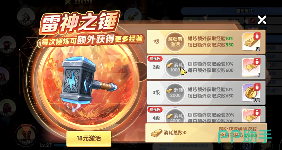该道具售价为18元,购买即刻生效,并同步解锁专属累充礼包。礼包内含多类实用资源,涵盖金币、强化石、进阶材料等高频消耗品。此外,雷神之锤支持等级提升——玩家可通过消耗金砖进行升级,每次升阶均可领取对应阶段的奖励,包括稀有锻造图纸、绑定元宝及限时增益道具,进一步强化资源复利效应。对具备稳定游戏时间与适度付费意愿的玩家,此道具具备明确的投入产出比。