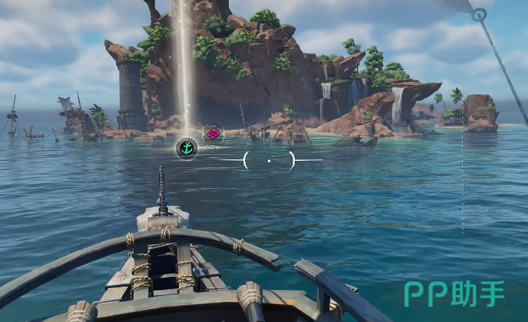出港不久,船只即出现漏水故障,迫使玩家就近寻找补给。此时,地图上会同步浮现显著的视觉标识:一座带有船锚图标的岛屿,即“隐秘岛”。靠近后自动触发登岛流程。该岛不仅是修复船只所需“船胶”的唯一初期获取点,更是角色“艾丝”的秘密据点。此外,岛屿本身被设定为“疯王遗迹”的藏宝区域,场景中融合了解谜机关、环境互动及轻度战斗要素,构成新手阶段综合能力训练的核心场域。