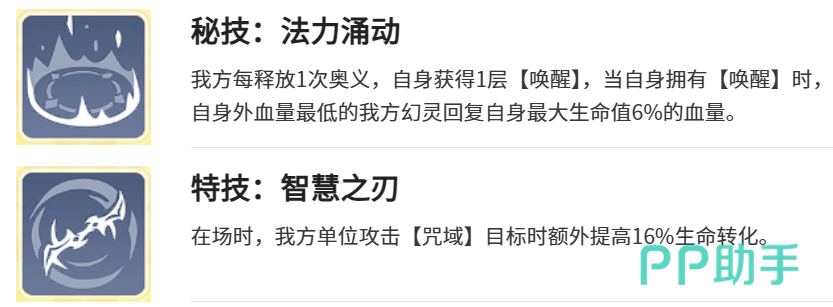 治疗维度上,奥法通过【法力涌动】构建团队续航闭环:我方任一单位每次释放奥义,奥法即获得1层【唤醒】效果,随即为自身及当前血量最低的友方单位恢复6%最大生命值。该机制使治疗效率与团队整体技能频率强绑定,战况越胶着、释放越频繁,治疗覆盖越稳定。而【智慧之刃】则强化输出端的自持能力:只要奥法处于战场,我方单位攻击被标记敌人时,均可额外获得16%的生命转化率,大幅提升持续作战中的生存容错。