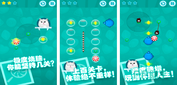 以逻辑推理与手眼协调为核心玩法,全系列共设300余关,每关均需结合重力、摆动轨迹与障碍物特性制定最优切割方案。采用高精度物理引擎模拟绳体运动全过程,小猫营救任务贯穿主线,辅以十余类动态障碍机制,挑战层层递进,对玩家空间感知与反应速度提出持续考验。