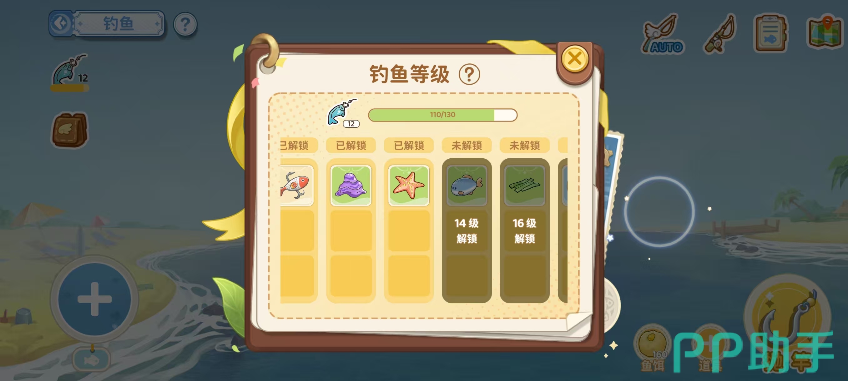 钓鱼不仅关联资源产出,还深度绑定图鉴解锁与成就系统。不同区域对应差异化鱼种分布与挑战门槛:全地图按角色等级划分为三类垂钓区——0级开放区域为森林沙滩,适合新手熟悉操作;10级及以上可进入滨海沙滩,鱼群密度更高、稀有度提升;20级后开放冰上窟窿区域,属高难度垂钓点位,需配合特定装备方可稳定出鱼。