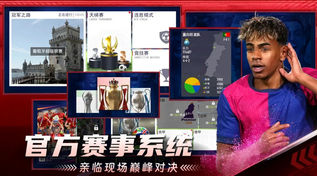 赛事体系覆盖广泛,涵盖天梯联赛、杯赛挑战、经典赛事复刻等多个模块,高度模拟欧洲主流联赛节奏与对抗强度。同时开放实时PVP匹配机制,支持跨区竞技,确保每一场对局都具备公平性与策略张力,整体内容深度与长期可玩性表现突出。
