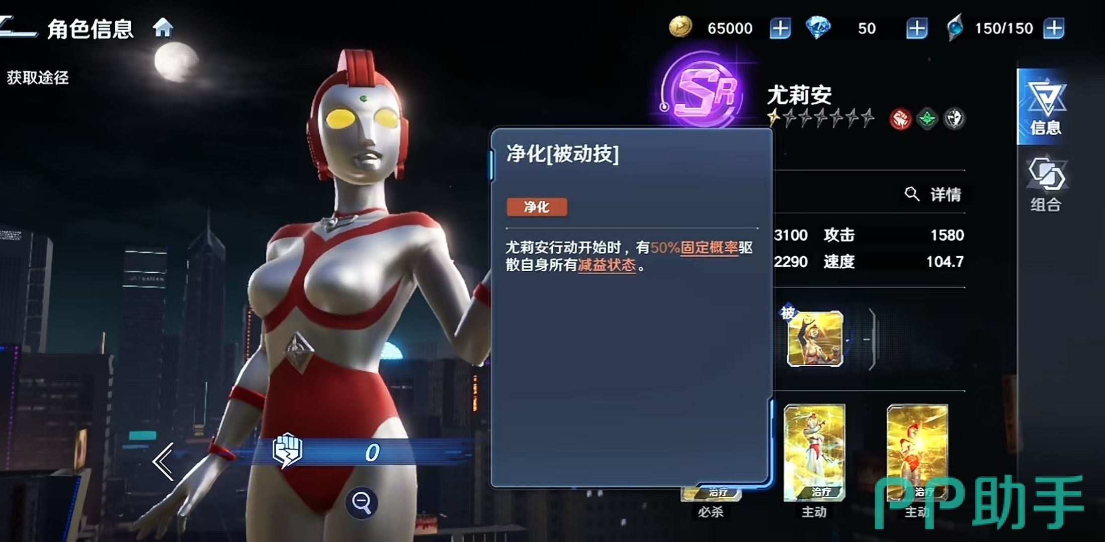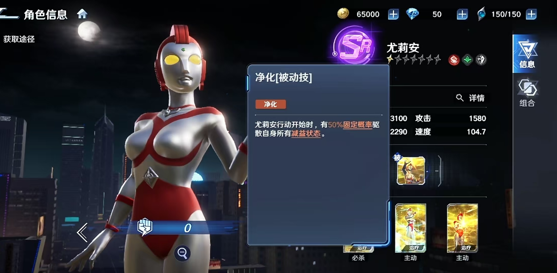 在众多可操作角色中,尤莉安作为SR稀有度单位,展现出远超品质定位的战略价值。其核心被动“净化”具备50%概率在自身行动开始时清除全部负面状态,虽作用范围仅限于自身,但有效保障了行动稳定性与持续作战能力,使其在前期开荒阶段即可稳定承担辅助职责。