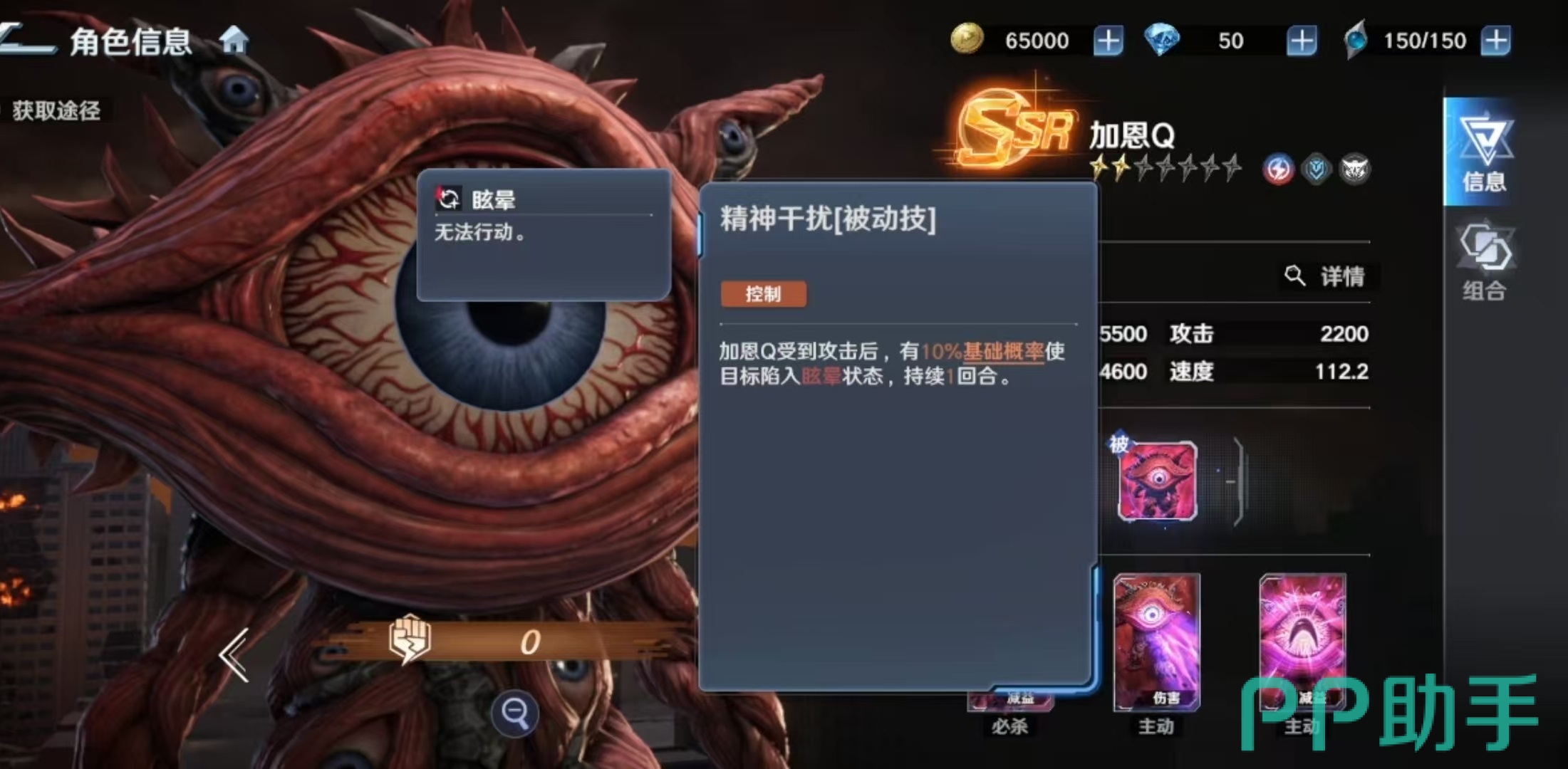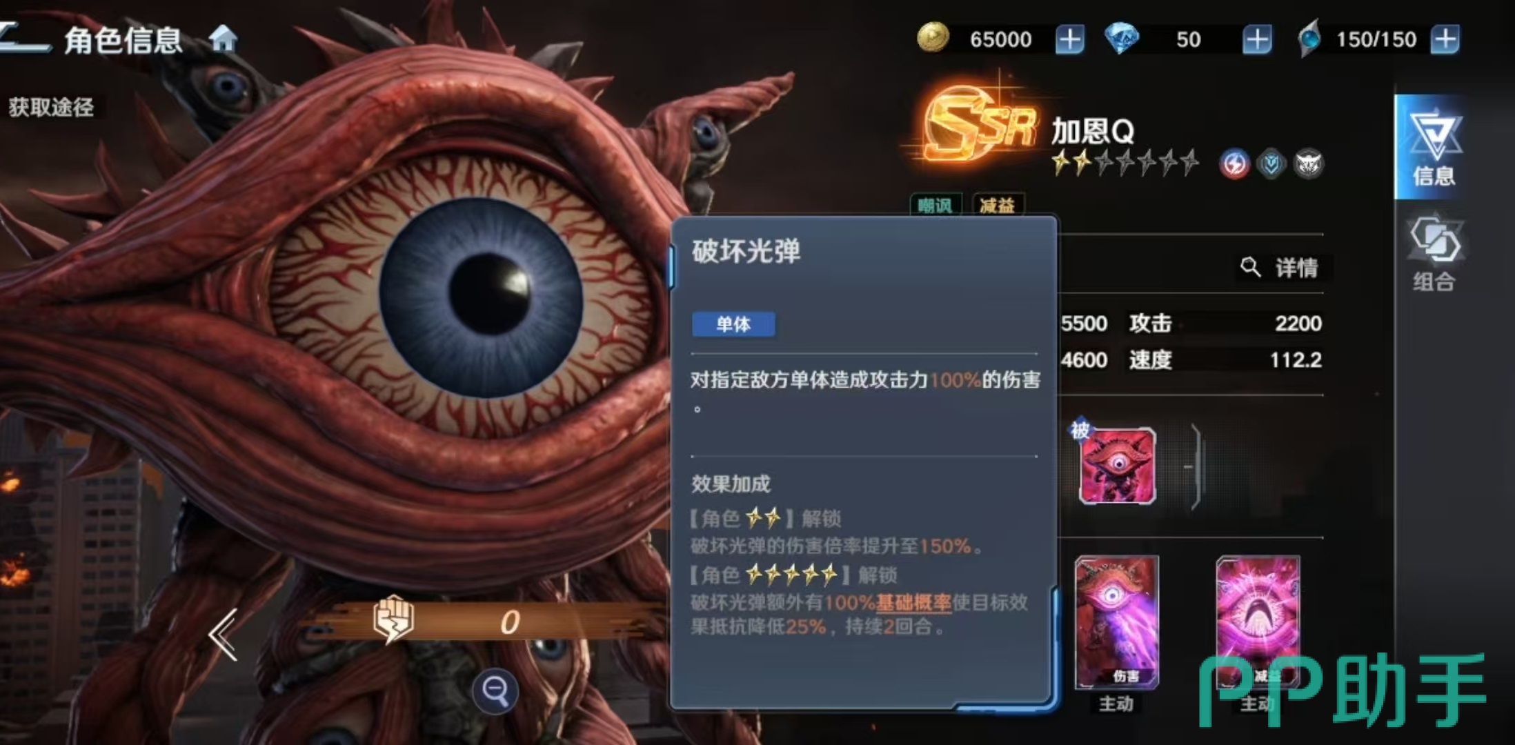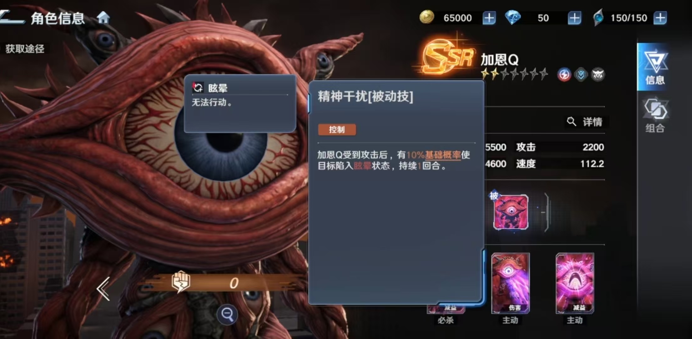 其必杀技“吸收光线”为单体高伤技能,命中后附带“迷茫”状态,使目标跳过下回合行动,并在其行动阶段开始时承受等同于自身攻击力100%的追加伤害。该效果兼具硬控与反伤双重价值,但受限于单体目标与概率触发机制,适用场景相对聚焦。一技能“破坏光弹”除基础单体输出外,还可降低目标效果抵抗值,显著提升队伍整体异常状态命中率。三技能“嘲笑之眼”则提供群体嘲讽能力,初始概率随星级提升最高可达70%,同时为自身附加护盾,强化生存续航能力。