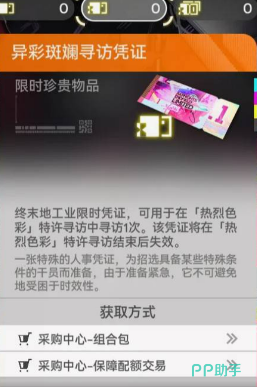 2月24日12时起,“异彩斑斓”签到活动正式上线,持续至下个版本更新维护前。活动参与条件不变。完成7日签到后,可获得5张异彩斑斓寻访凭证,专用于“热烈色彩特许寻访”卡池,有效期严格绑定卡池开放周期。