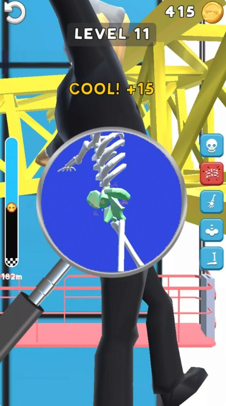 以高强度物理模拟为基础的动作挑战型产品,核心围绕“俯冲—踢击—骨骼崩解”三重反馈构建玩法循环。玩家需精准控制角色下落角度与肢体朝向,在接触瞬间触发最大破坏效果。随着关卡推进,障碍结构日趋复杂,对操作稳定性与空间感知能力提出更高要求。