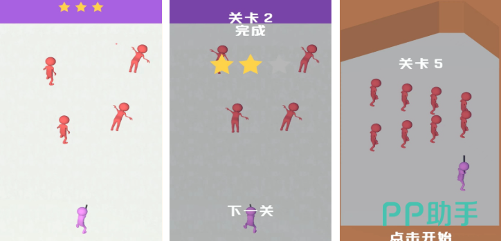 采用上帝视角的轻量级射击闯关玩法,玩家通过点击屏幕控制枪手瞄准并清除画面中所有红色角色。粘土风格角色建模搭配夸张动作反馈,强化视觉辨识度与娱乐节奏;无体力限制、无复杂成长线,纯粹依靠即时反应推进关卡,是典型的高互动低负担型作品。