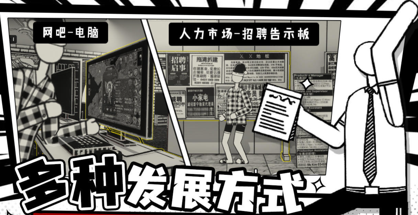 以黑色幽默解构职场生态的2D模拟经营游戏。采用高对比度黑白美术风格,玩家需在多重职业路径中做出选择——从快递员、程序员到便利店夜班员工,每种身份对应差异化任务链与成长逻辑。资源管理、时间分配与随机事件交织,真实还原打工人日常压力与微小成就感。高度风格化的叙事与沉浸式音效设计,引发广泛社会共鸣。