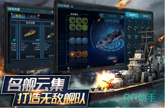 以大规模海战为舞台的即时战略类游戏,玩家需在广阔海域中调度驱逐舰、巡洋舰、航母等多级舰艇编队。核心机制围绕射程压制、航迹规避、弹幕覆盖与火力协同展开,要求精准计算敌我相对位置、雷达探测半径及鱼雷攻击窗口期。舰队养成系统涵盖舰船升级、武器换装、阵型编组三大维度,支持个性化战术配置。