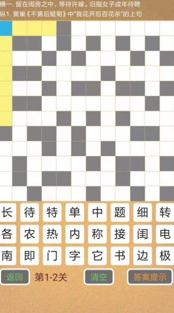 借鉴传统 crossword 机制,以经典诗词名句与课标词汇为答案库。横向与纵向线索相互制约,需同步满足语法结构、押韵规律及语义连贯性三重条件。初期关卡使用白居易、李白等通俗诗句建立信心,后期引入《论语》章句、唐宋八大家名篇等高阶内容,培养严谨的语言组织能力。