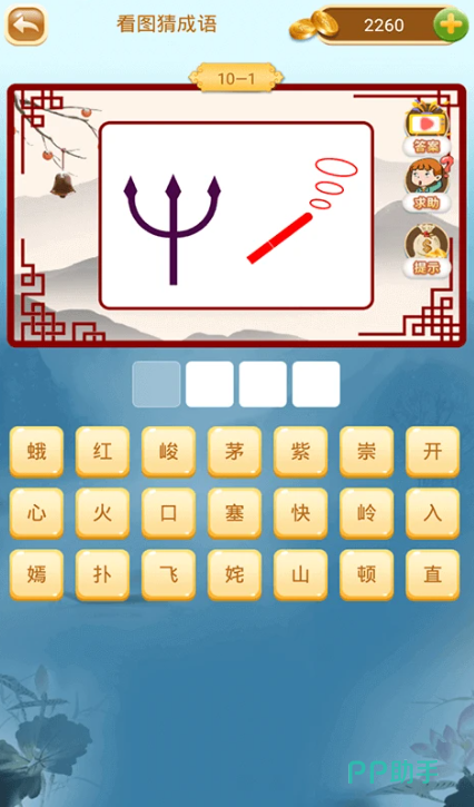 采用国风手绘界面,营造沉浸式古代语境。核心玩法为线索引导型填空,每关提供语义提示、典故出处或字数限制等多重信息,要求玩家调用既有成语储备完成补全。无计时压力,支持反复尝试,错误反馈同步解析构词逻辑与历史渊源,助力系统性积累而非碎片化记忆。