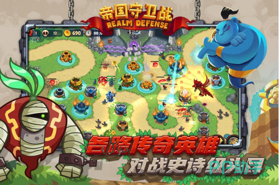 采用Q版美术风格,剧情设定为魔王势力大举入侵。玩家担任前线指挥官,调度融合东西方神话体系的角色阵容。地图规模开阔,支持多种元素塔协同部署,如冰霜之塔可降低敌方移速,火焰之塔提供持续灼烧效果,策略组合空间丰富。