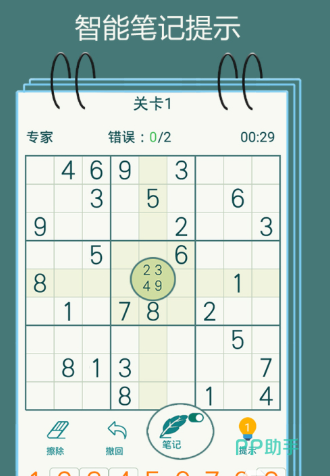 数字逻辑训练工具,严格遵循标准数独规则:每行、每列及每个3×3宫格内均须填入1至9不重复数字。题库覆盖入门级(提示数≥35)、进阶级(提示数25–34)与专家级(提示数≤24)三大难度区间,总量超万道。支持断点续玩、错误高亮、候选数标记及智能提示等功能,数字键位映射准确,输入逻辑符合直觉,兼顾新手引导与高手挑战需求,是日常脑力激活的理想选择。