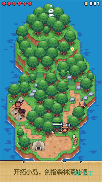 以高辨识度像素美术见长,采用“航海跳岛+据点建设”双轨驱动模式。玩家需驾驶自制船只穿梭于多个地理特征迥异的独立岛屿之间;各岛资源类型严格差异化配置,涵盖稀有矿物、特有动植物及气候适配材料;集成狩猎、垂钓、游泳等生存动作,并嵌入类沙盒式建筑系统,支持多层结构搭建,资源充足后可建成含功能分区的大型私人住所。
