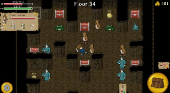 本作支持离线运行,无需网络连接即可启动游玩。虽画面表现偏简约,但玩法深度与成长节奏设计扎实。玩家需通过反复试炼积累经验,提升角色等级与技能强度,最终挑战各类魔物及关底Boss,达成净化洞穴的目标。