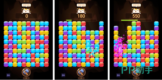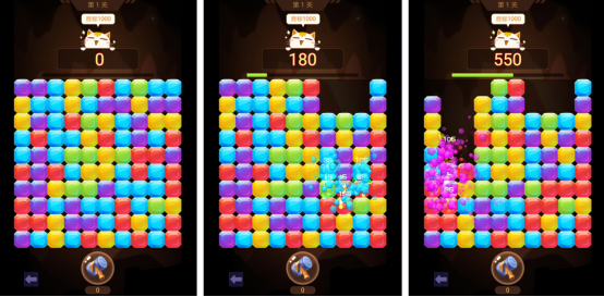 游戏舞台设定在一座布满机关与守护者的隐秘山洞。洞内藏有大量金银珠宝,但需先破解色彩谜题:点击相邻同色方块进行消除,逐步削弱守护神力量。每关设有明确目标,例如首关要求累计得分达1000分,达标后解锁后续更具挑战性的关卡。