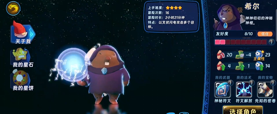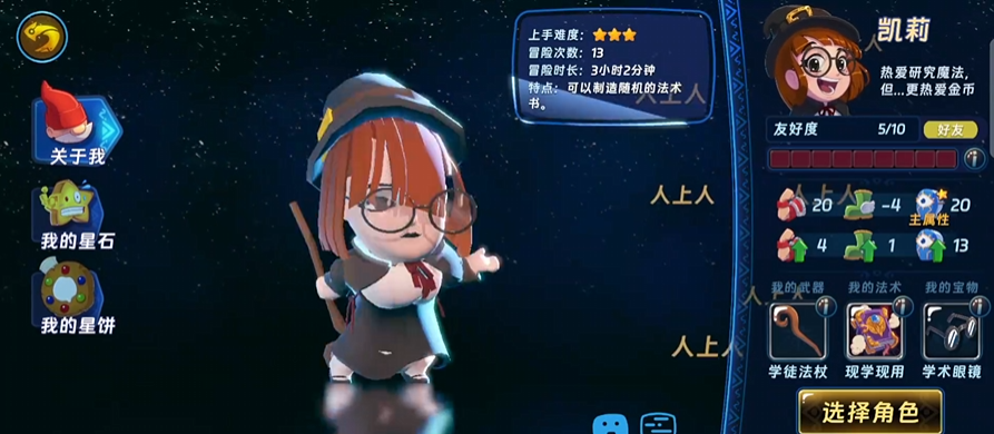 首推角色为凯莉,全服免费解锁,无需抽卡或额外资源投入。定位为远程法术输出,技能机制简洁直观:可随机生成法术书并释放对应元素攻击。从基础属性面板可见,其法术强度显著高于同阶段其他新手角色,上手零压力,是开荒期稳定清怪与应对中低难度森林事件的理想选择。