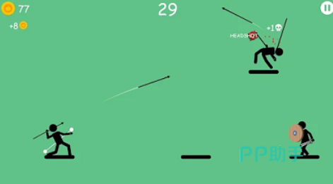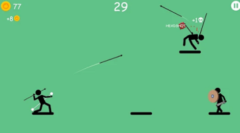 长矛投掷是款具有火柴人主题的投掷武器战斗的手游,主要玩法就是投掷出长矛对目标进行打击,投掷手感很不错又有着很简单的美术风格,可以花费金币去提升长矛的投掷力度,更有盾牌这样的防御道具可以保护自己免受伤害,回合制的投掷战斗玩法公平性十足,各位火柴人爱好者一起投掷长矛作战吧。