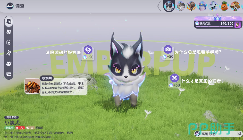 伊莫里面暂时没有塔尔这个角色,但会有很多其他的角色可以陪伴玩家一起冒险,每个宠物不只是玩家在游戏里的虚拟好友,更能通过捕捉的方式体验到收集的趣味,宠物在后期还能参与战斗,每个宠物都有不同的形态和特性,生活习性和战斗特性都会有区别,小碳犬可以说是游戏里最受欢迎的一个宠物,作为火系宠物,在对战过程中能打出较高的伤害,同时每一次技能输出还会有灼烧效果,后期挑战的过程中,大量的解谜玩法也都需要利用大量的火元素,非常适合作为队伍里的常驻角色。