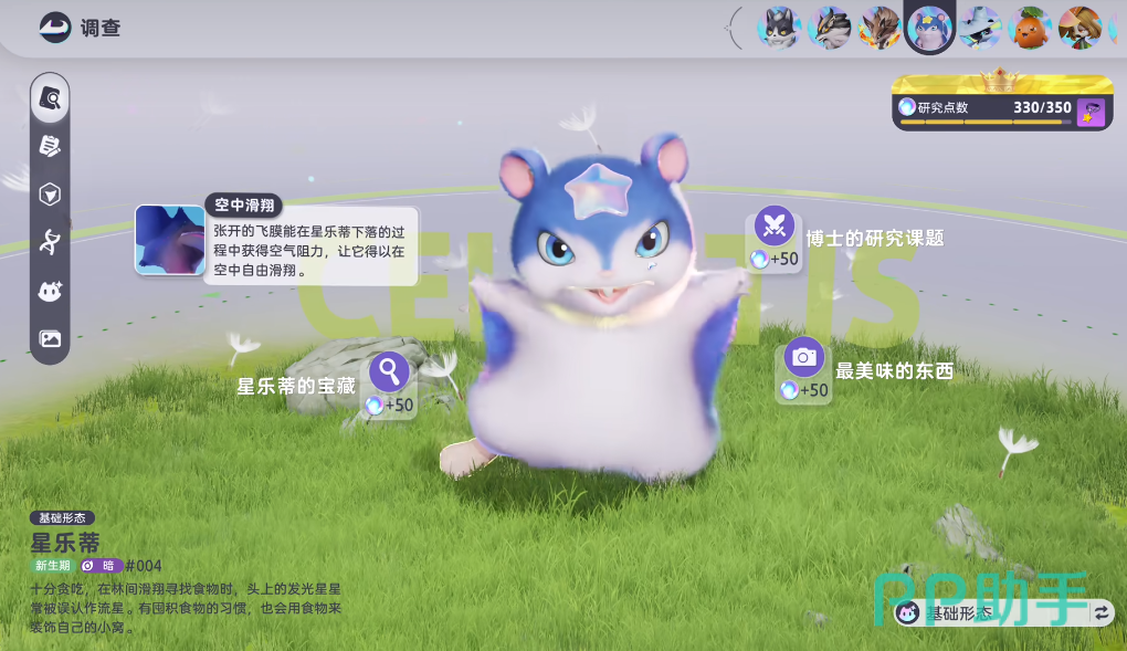 星乐蒂是一个非常可爱的小飞鼠,常规状态下它会以老鼠的形象出现,随着后期的成长,角色能进化成魔法师,作为暗属性的角色,在游戏里能克制光属性成员,同时也能在游戏里以较远的距离输出,挑战过程中想要快速探索场景的话,玩家就可以借助这个宠物的飞行技能,从高处向下快速穿梭飞行,能在较短的时间内到达自己想要的地点,有一些特定的解谜关卡中,就需要借助飞行能力快速通关。