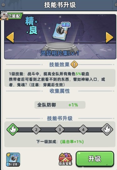 比如房子被大树挡住时,就必须要装备合金斧传说,才能把树砍倒继续前进。游戏里还有多种带有不同效果的技能书,用途也各不相同,其中有一本叫灵异照相机的技能书比较重要。几乎是必拿的道具,有了它,玩家能发现平时看不到的隐藏房间。