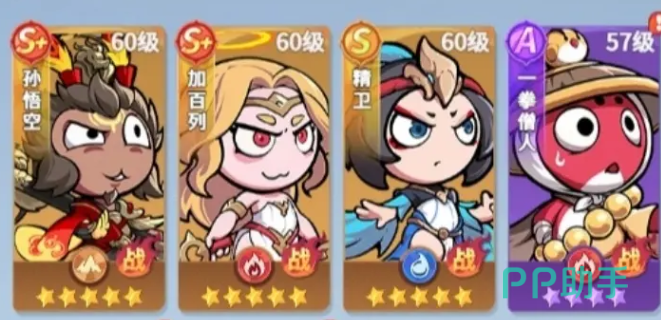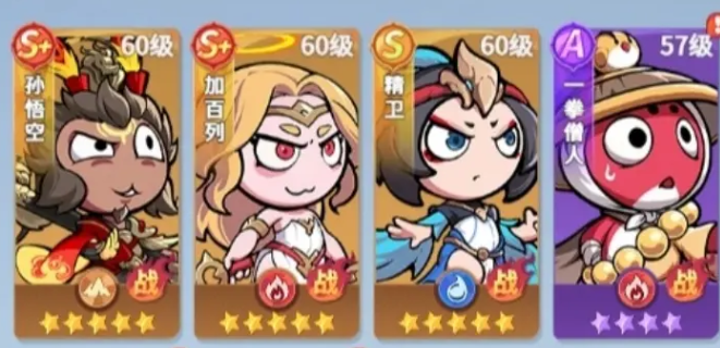 孙悟空、加百列、精卫,还有一拳情人:这一个阵容中的孙悟空在开局时就能够打出全体暴击,一瞬间就可以把敌方的血线直接压到斩杀线。加百列可以用神圣治愈去有效稳住全队的血线。天使祝福就能给孙悟空去叠满更多的暴击buff,让输出直接翻倍。精卫的填海之誓就能迅速的给残血目标去补充伤害,一拳情人虽然是A级卡,但是具备一个眩晕的效果。可以给后排创造出完美的输出环境,这一套阵容在打脆皮队伍时,基本上三个回合就可以结束战斗。