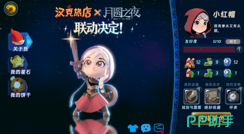 本作将与知名独立IP《月圆之夜》展开深度联动。联动内容涵盖跨世界观剧情嵌套、专属NPC交互任务及限定外观道具。其中,“小红帽”将以高智谋近战角色身份登场,其战斗逻辑强调力量属性与武器协同——短剑主攻速与连击,圆盾强化格挡响应与反击窗口,整体操作兼顾技巧性与策略纵深。