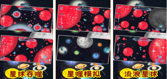 进入游戏之后,玩家仅是一颗微小的宇宙尘埃,流浪在超大的宇宙当中,一不小心就会被其他行星所吞噬,因此必须要强大自己,在星际中游走,吞噬其他比自己小的天体,来积累更多的能量,扩张个人体积,整体采用高清画质也有精致的次时代引擎技术,构造出浩瀚又美美的宇宙和星际,打造出具有艺术感的宇宙场景。