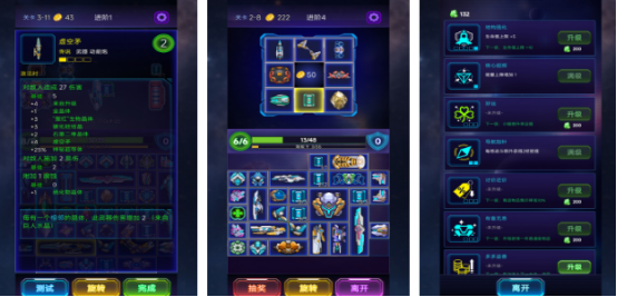 在浩瀚无垠的宇宙当中任意游走,结合策略规划资源管理,以及肉鸽元素,在有限的星舰格子内合理安排设备和武器,通过连接能量路径,让装备在战斗中自动运行,最终实现攻击、防御等不同的辅助效果。完整的肉鸽随机性及星系地图,所获得的装备与事件都是随机生成的,给玩家带来新鲜感。