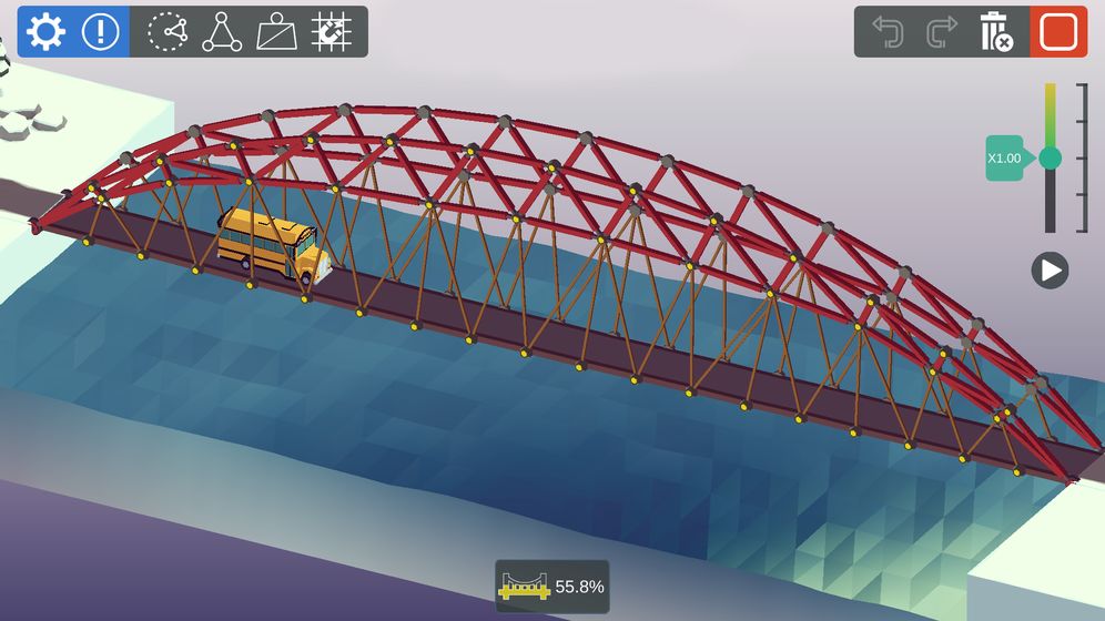 木板,钢梁,砖块都属于限定的建桥资源,在合理的预算下就可以开始桥梁的搭建了。遇到峡谷与河流的区域时,玩家需要以更高的技术设计出稳固的桥梁,当每一辆车通过时都能够是最安全的状态。在主题中融入了中世纪城堡、城市道路这样的背景,让桥梁建造的整个过程充满着剧情性。