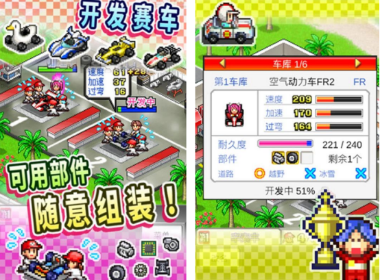 属于一款开罗所打造的赛车手游,除了支持经营着车队,更能够化身为游戏当中像素又可爱风格的主角,支持对车辆进行随意的组装,通过打造厉害的车辆,以及组建厉害的队伍,更能够在比赛当中成为世界最快的队伍。玩家将在这里面经营属于自己的赛车队,利用不断冲刺获得桂冠的方式得到相应的成就,感受所带来的乐趣。