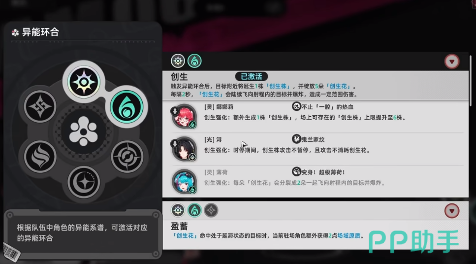 游戏里采用了六种不同的基础属性,每次挑战之前,玩家都可以选择对应属性的成员加入战斗,其中任意两个属性组合起来,还能形成特定的环合关系,在这种设定下又能衍生出六种不同的环合效果,玩家可以自由组合角色加入对战,每次挑战角色都会有能量条,常规状态下会是满值100点,每次释放大招都会减少相应的点数,但释放普攻和小技能的时候,能让能量不断积攒,等能量攒满之后,还有机会触发独特的环合技能,可以在挑战的过程中让角色触发出更强的伤害。