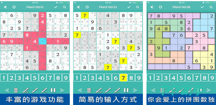 欢迎高智商的学生玩家进入数独世界学习数独的知识,这款不联网的数独手游有着丰富的游戏功能,输入方式和操作机制也简化了不少,拼图数独和数独知识注解这些新颖玩法值得挑战,满屏数字的数独游戏概念也是深入人心,画面塑造色彩鲜艳但并不会出现视觉疲劳的情况,数独爱好者快在数独的世界中不断挑战吧。