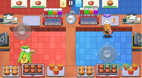 以厨房制作各种美味的料理为主要的特点,既可以在两个人玩的时候,利用双人合作的方式经营着厨房,完成客人的订单,也会在完成任务的时候遇到很多的障碍,只有在出现机关的时候及时解决的情况下,才能够利用配合的方式完成任务。另外就是两个人玩的过程当中,如果想要开启双人之间的对决,也是可以的,提供两种模式。