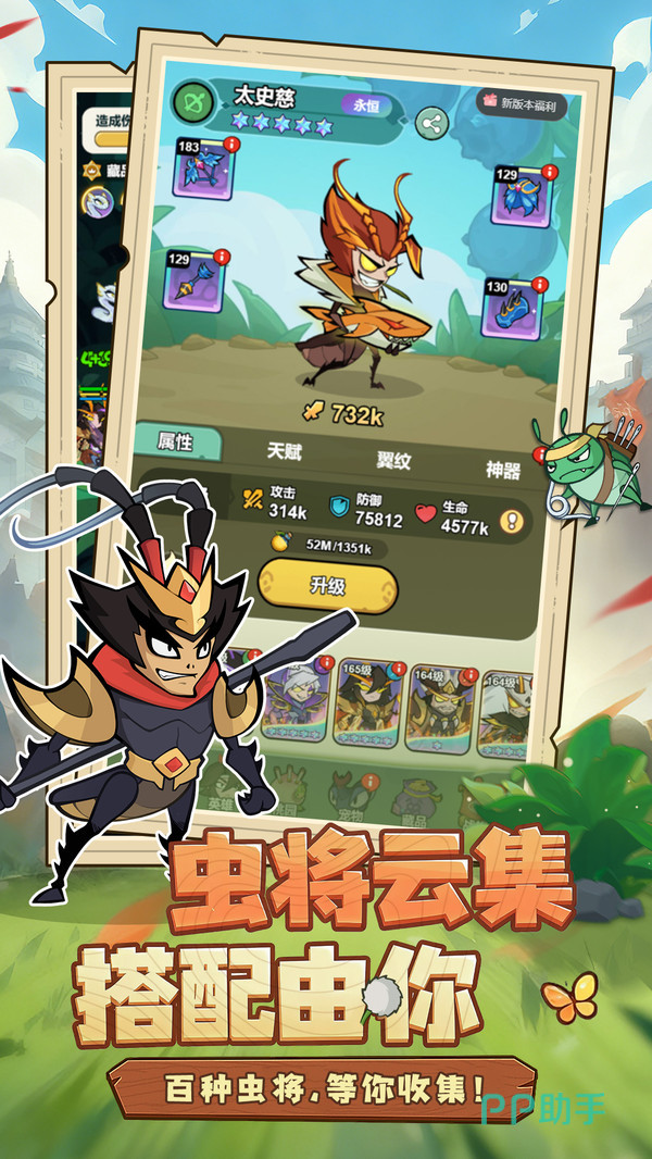 《伴你同行》以一种大开眼界的方式为我们呈现了截然不一的三国世界,将主公以及各种名将,全部都转化成了稀奇古怪的昆虫,并围绕着各种新奇百怪的虫族,设置出了更为玄妙的军事对抗玩法,每一个虫将都搭载了独立的星级以及技能进阶系统,在进行实战中我们要根据将领的站位,去搭载以攻防属性为主的装备。