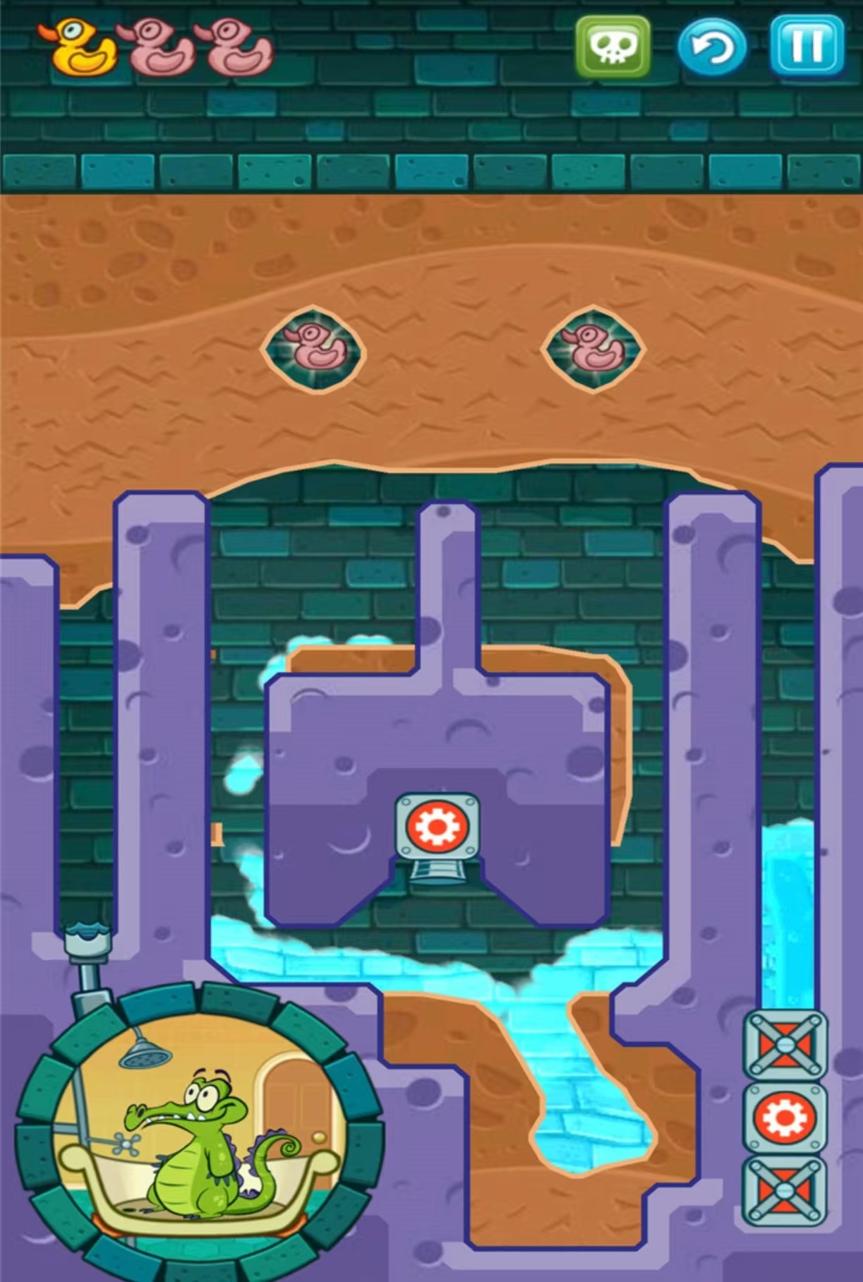 《顽皮小鳄鱼爱洗澡》这里运用了很多的物理和解谜元素,需要帮助小鳄鱼成功的将水引流,成功的引到子缸中帮助小鳄鱼洗澡。每个关卡内是不同的布局和设计,每个场景内都会设置不同的障碍和陷阱,需要尝试不同的引流方式。也有可能会导致水发生污染,变成脏水或者有毒的水,有很多的提示和趣味性的道具,还有三个不同风格的场景和故事。