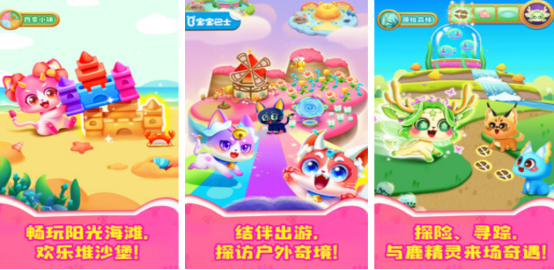 宝宝巴士所创作出的这款手游,将会让孩子进入到鸟语花香的猫咪世界里,各种可爱的猫咪精灵等大家来挑选,比如有火哈哈或者是绿花花,这些猫咪的外观都有较大的差异,大家挑选之后就可以认真去照顾,比如为其制作出各种特色美味的粉色芝士蛋糕等等,还可以在世界小镇当中感受四季的变化。