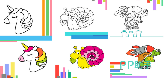 更多空白的素材全部展现,比如有可爱的小动物或者是独角兽等等,整体的操作方式特别简单,利用手指就能够完成涂色的任务,整张图片就会变得栩栩如生。色彩鲜艳的颜色任由大家来选择,能够培养孩子对于色彩的辨识度,可从不同的素材中正确挑选。