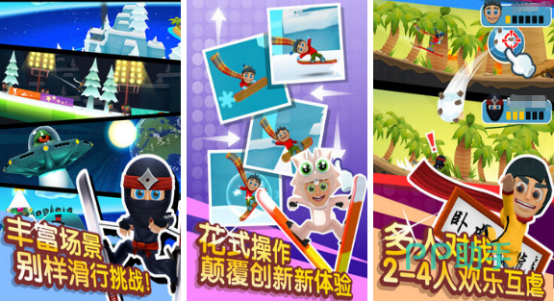 超级敏捷的跑酷类手游,以滑雪为主题其核心特色就是3d画面丰富的玩法,受到众多玩家的喜爱,有风格迥异的立体场景,比如被岩浆侵蚀的侏罗纪公园,又或者是被冰雪包围的企鹅山峰,带来沉浸式滑雪体验与乐趣,游戏支持多人对战,2~4名玩家可在无线网联机之下,完成实时对决。