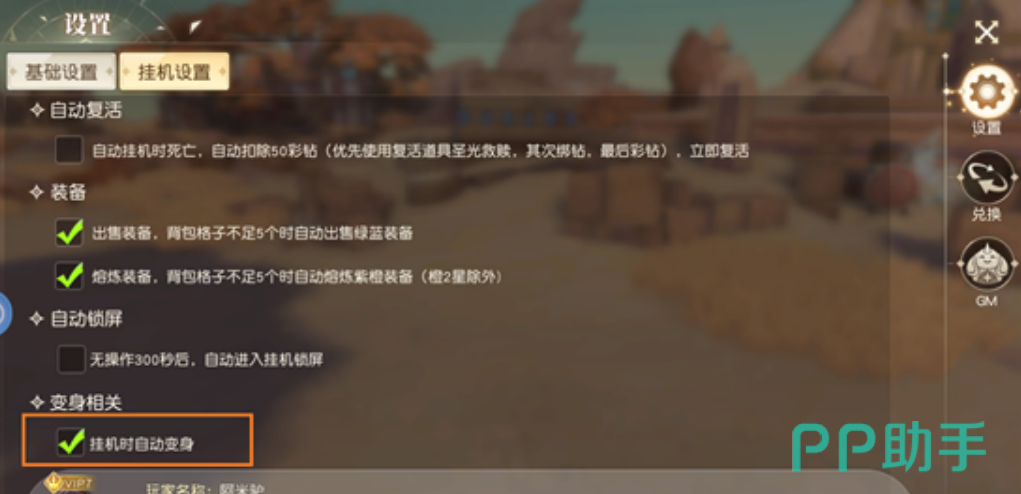 天神入口位于游戏主界面右下角固定按钮区域,点击即可进入专属管理界面。需特别注意:挂机状态下天神变身默认处于禁用状态。如需实现全自动战斗流程,须手动进入【设置】→【挂机配置】,开启“挂机时自动变身”选项。同步建议启用“自动复活”及“装备自动处理”功能——后者具备智能识别逻辑:当背包剩余空格少于5格时,系统将自动分解绿色与蓝色品质装备,避免因背包溢出中断副本节奏。