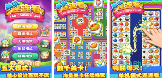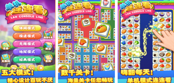 在单机模式之下完成连线,将相同图案连接在一起就能够将元素快速消除,将所有元素消除之后即可通过关卡,游戏有简单的限时模式在规定的时间内消除所有元素,即可获得丰厚道具,采用萌趣的主题,包括水果、蔬菜等,图标设计足够清晰。色彩更是相当明快因此已成为当前主流的游戏模式。