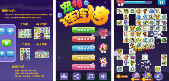 别致的单机类作品,同样也以连连看为特色题材,关卡设计会智能匹配,后续难度会大幅度增加。当前有5种特色模式除了有非常经典的宠物连连看之外,也有无尽泡泡龙和打砖块,这简直就是小游戏的合集版本,满足更多玩家的偏好与需求,大量精心设计的关卡难度阶梯式上升,兼具休闲性与策略挑战。