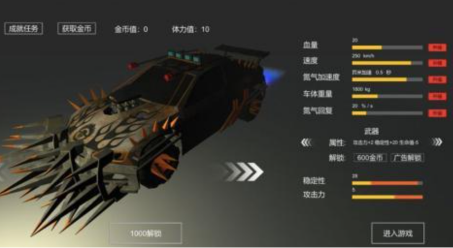 真实物理引擎支撑起了碰撞玩法,战车相撞的效果做得挺夸张。3D废土场景里金属锈蚀质感很足,开放地图面积大,荒漠和废墟地形都有。对战规则很直接,把对手撞瘫痪就算赢。改装自由度高,部件用金币解锁,近战和远程装备能同时装配。成就和任务系统能给额外金币和零件,单人竞速和多人联机都支持,在废土里体验速度和撞击的感觉。